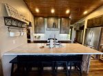 Apres Powder Haus is a 1550 sq ft, 3 Bedroom, 2 Bath cabin located right across the road from Terry Peak’s Stewart Slope so you can walk right to the bunny hill! The lower level features an amazing garage hang out space with wood burning stove, Ms Pac Man Game, Large Bar with kitchenette, Flatscreen TVs, full bathroom, and a hot tub just outside to soak up the stars.