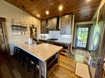 Go upstairs to the main living area and you'll have 3 bedrooms, Kitchen/Living space, Bathroom with washer/dryer, and 2 outdoor deck areas for enjoying the mountain views.