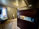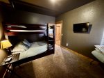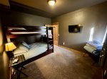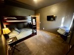 Bedroom 5 in lower level has a bunk bed and a trundle bed, and TV.